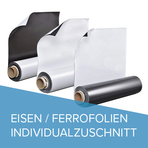 Als Hersteller von Eisen-Ferrofolien fertigen wir für Sie jedes gewünschte Format passgenau an. Je nach Material sind Einzelzuschnitte bis zu einer Größe von 360 cm x 100 cm möglich. Sie können zwischen selbstklebender oder nicht selbstklebender Ausführung wählen. Zudem stehen Ihnen die Farben Weiß matt, Weiß glänzend (mit Whiteboard-Effekt) sowie Braun zur Verfügung. Ihren individuellen Preis erhalten Sie sofort angezeigt – die Folien können Sie direkt online bestellen.