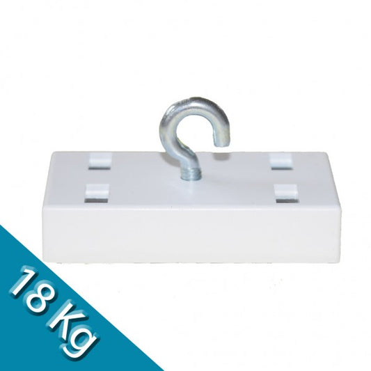 Leistenmagnet 53 x 27 mm Ferrit mit Haken, weiß - hält 18 kg