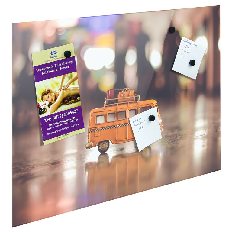 - 2. Magnetisch: Durch das zusätzliche Anbringen eines Metallrückens (Eisenfolie) hinter dem Druck wird somit die gesamte Fläche zu einer Magnetwand. Bitte beachten Sie, dass Sie besonders starke Neodym-Magnete benötigen. Im Lieferumfang werden bereits 3 Neodym-Magnete gratis mitgeliefert.