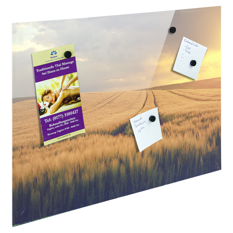 • 3. Magnetwand: Durch das zusätzliche Anbringen eines Metallrückens hinter den Druck wird somit die gesamte Fläche zu einer Magnetwand. Bitte beachten Sie, dass Sie besonders starke Neodym-Magnete benötigen. Im Lieferumfang werden bereits 2 Neodym-Magnete gratis mitgeliefert.