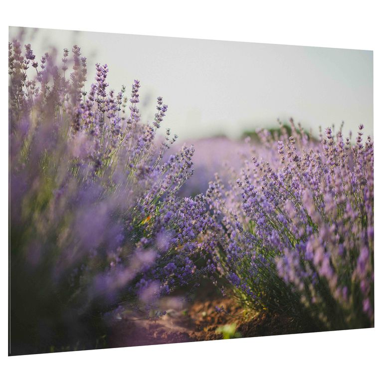 Bedrucktes Acrylglas als Magnetwand, Küchen-Hintergrund, Motiv Lavendelfeld