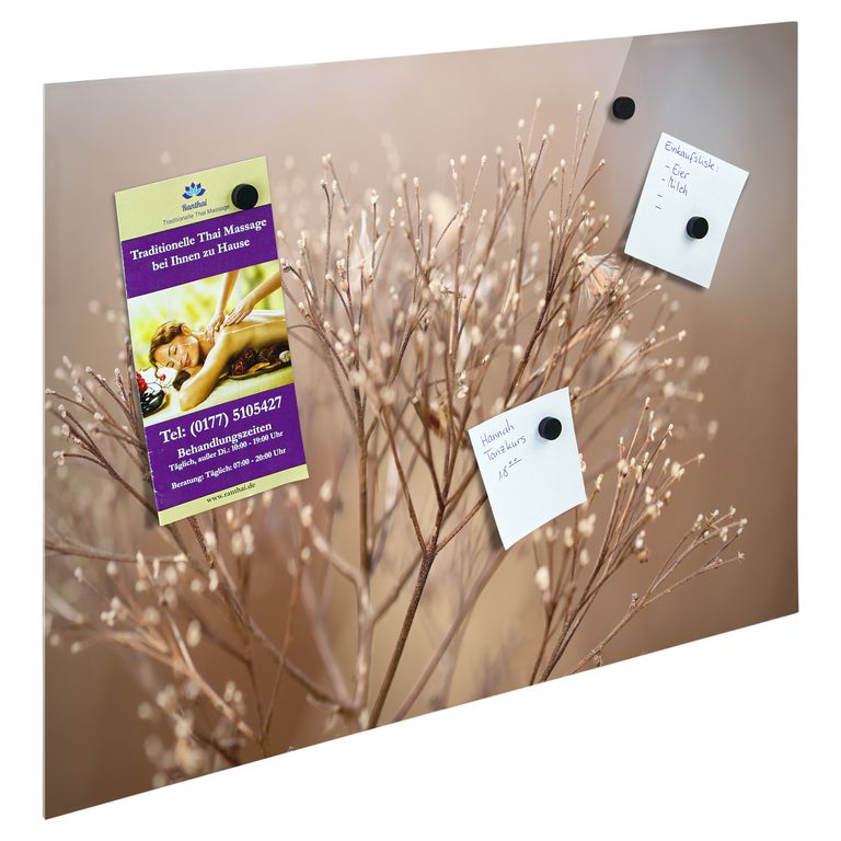 • 2. Magnetisch: Durch das zusätzliche Anbringen eines Metallrückens (Eisenfolie) hinter dem Druck wird somit die gesamte Fläche zu einer Magnetwand. Bitte beachten Sie, dass Sie besonders starke Neodym-Magnete benötigen. Im Lieferumfang werden bereits 3 Neodym-Magnete gratis mitgeliefert.