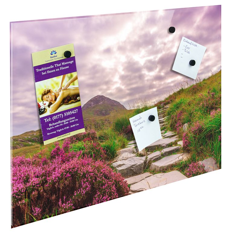 • 2. Magnetisch: Durch das zusätzliche Anbringen eines Metallrückens (Eisenfolie) hinter dem Druck wird somit die gesamte Fläche zu einer Magnetwand. Bitte beachten Sie, dass Sie besonders starke Neodym-Magnete benötigen. Im Lieferumfang werden bereits 3 Neodym-Magnete gratis mitgeliefert.