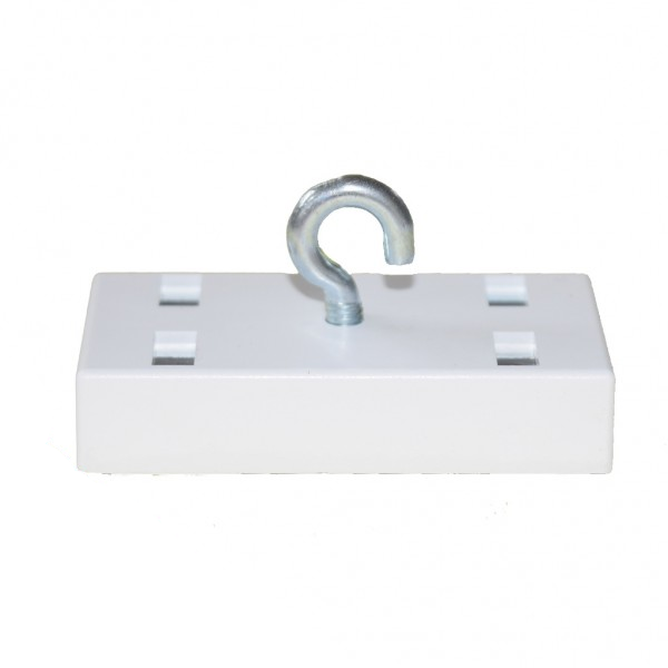 Leistenmagnet 53 x 27 mm Ferrit mit Haken, weiß - hält 18 kg