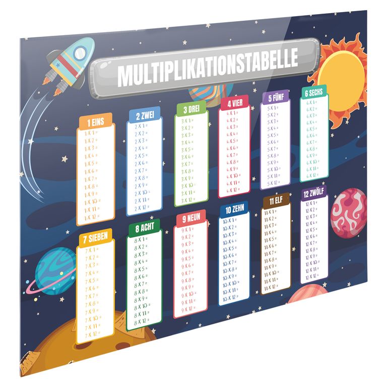 Lerntafel Einmaleins 1x1 in 60x45cm Bedrucktes Acrylglas Mathe Nachhilfe Lernen Space