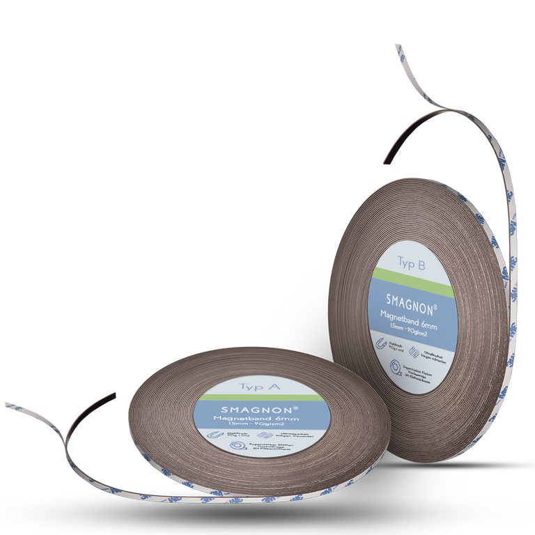 Unsere Smagtron Magnetbänder sind ein Muss für alle, die nicht magnetische Unterlagen miteinender verbinden möchten. Durch die gegenpolige Magnetisierung von Typ A und Typ B haben Sie eine absolut bündig sitzende Verbindung, die es Ihnen erlaubt, in Sekunden andere Vorlagen anzubringen. Die Magnetbänder eignen sich hervorragend als flexible Beschriftungs- oder Kennzeichnungsmöglichkeit auf allen Stahlflächen für Lager, Büro, Praxis oder Kanzlei, für Keller und Küche. Es lässt sich bequem mit einer Schere auf die gewünschte Länge kürzen. Weitere Abmessungen bieten wir Ihnen auf Anfrage gerne an. Magnetband Combi - Typ A & B ziehen sich gegenseitig an.