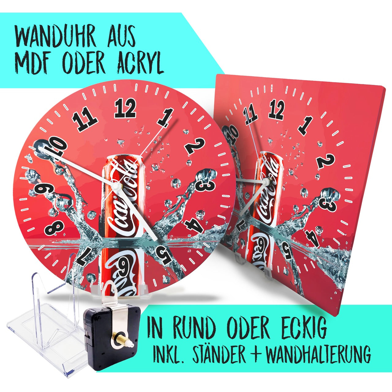Hochwertige 30cm-Uhren Made in Alzenau Lautlose Uhr MDF Acryl Motiv Softgetränk