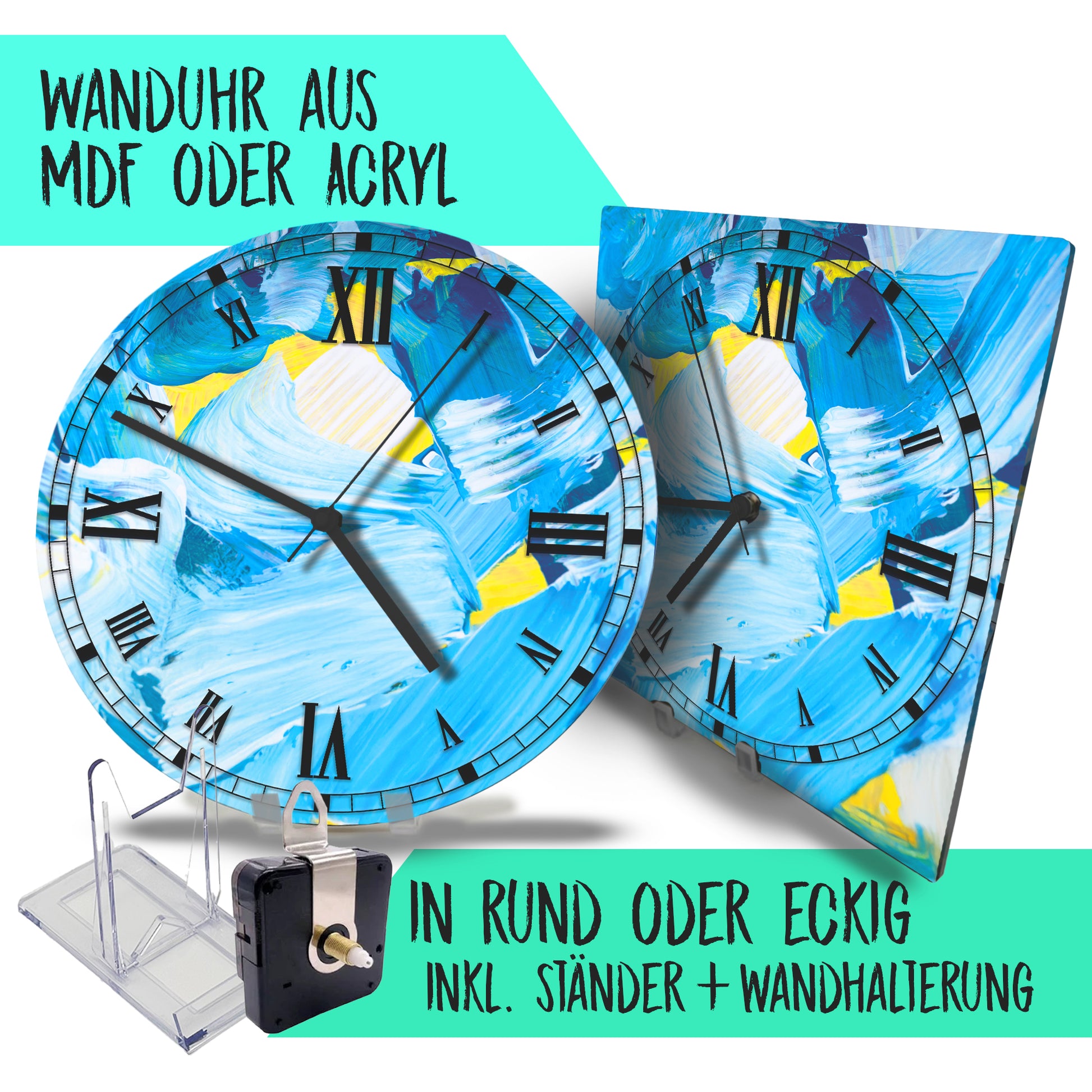 Hochwertige 30cm-Uhren Made in Alzenau Lautlose Uhr MDF Acryl Motiv Blue Malerei