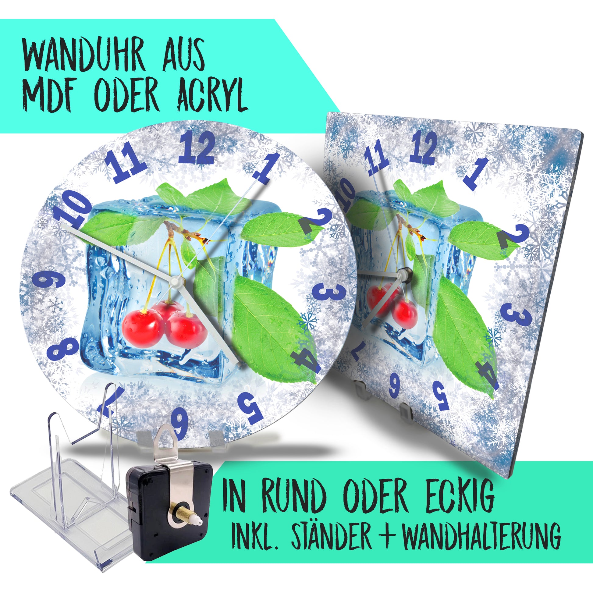 Hochwertige 30cm-Uhren Made in Alzenau Lautlose Uhr MDF Acryl Motiv Eis Kirsche