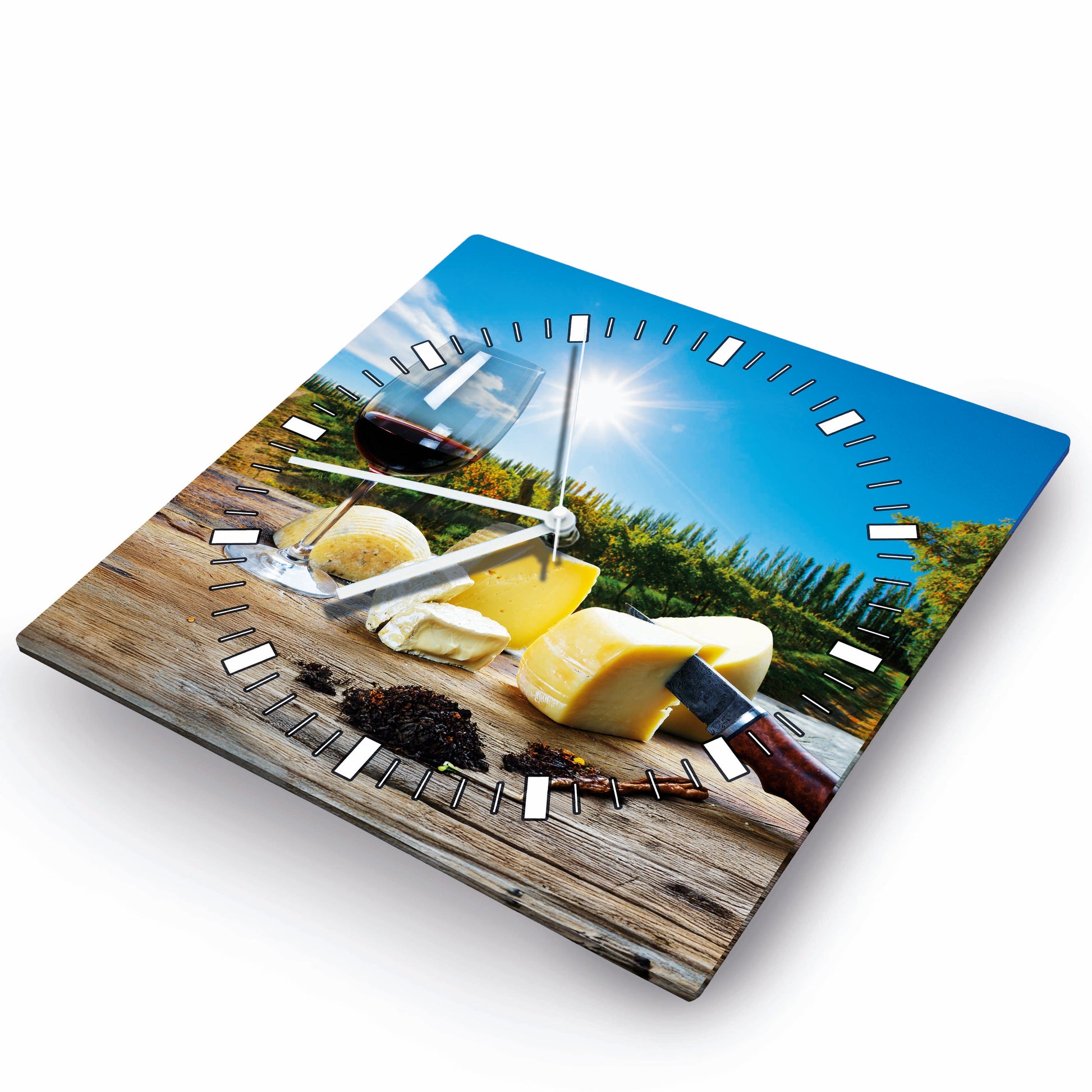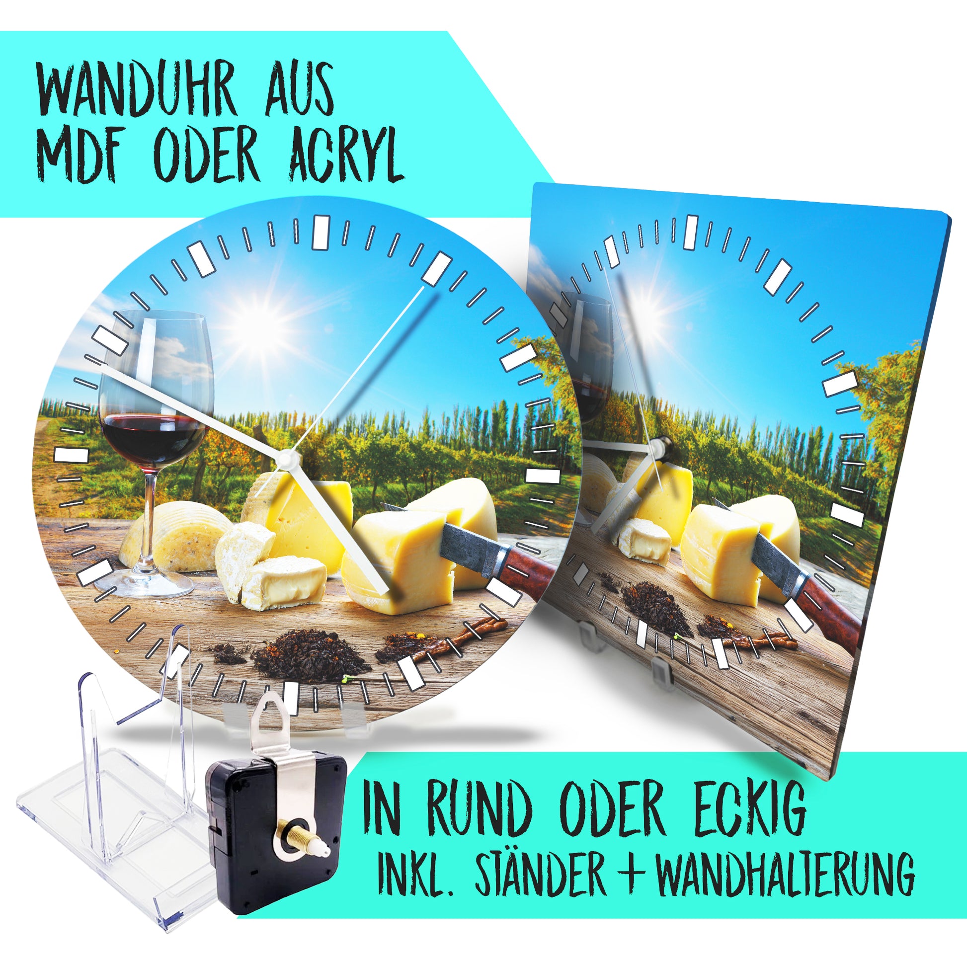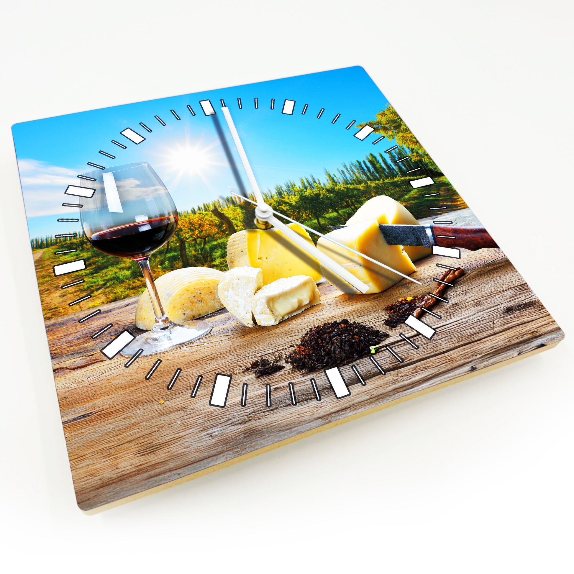 Hochwertige 30cm-Uhren Made in Alzenau Lautlose Uhr MDF Acryl Motiv Wein Käse