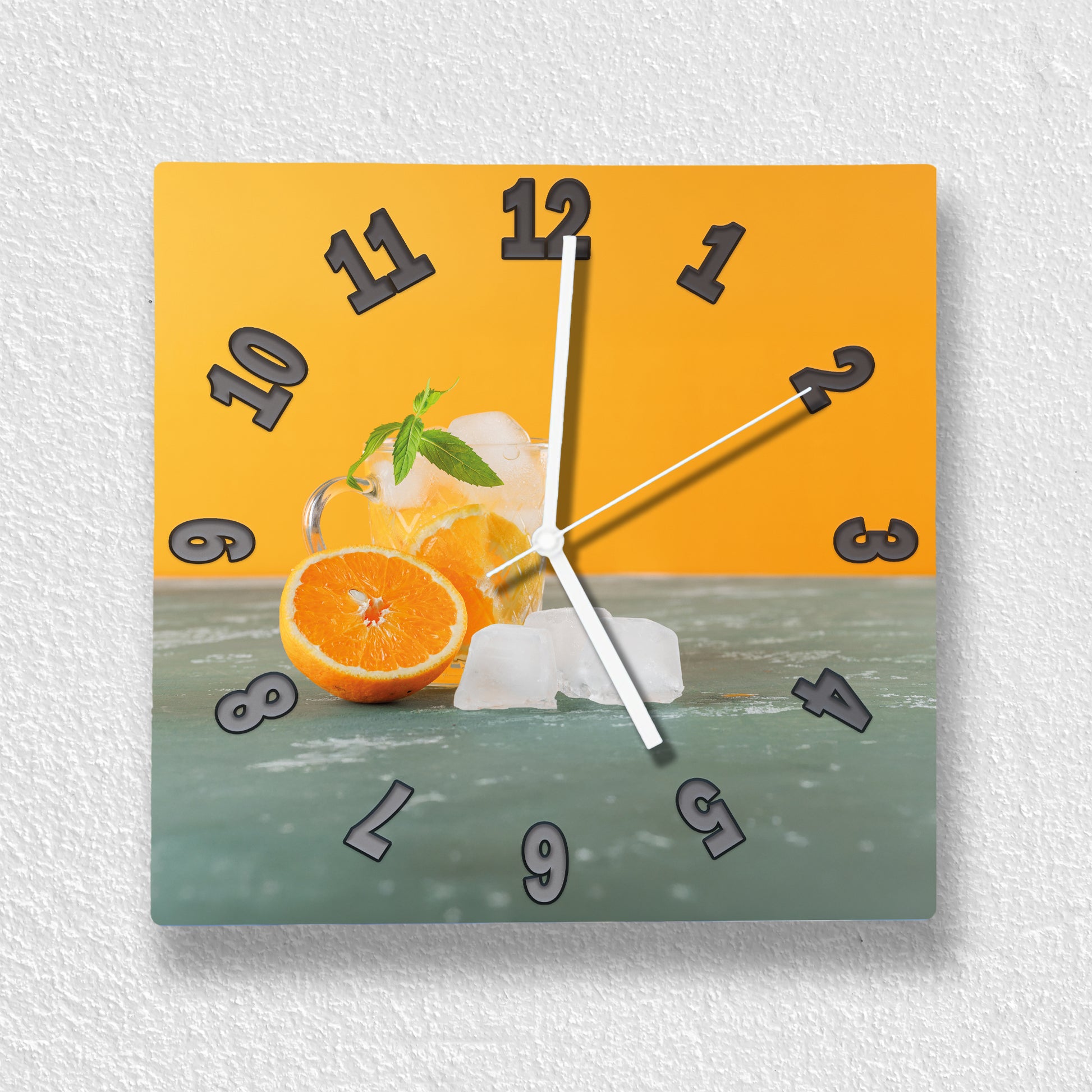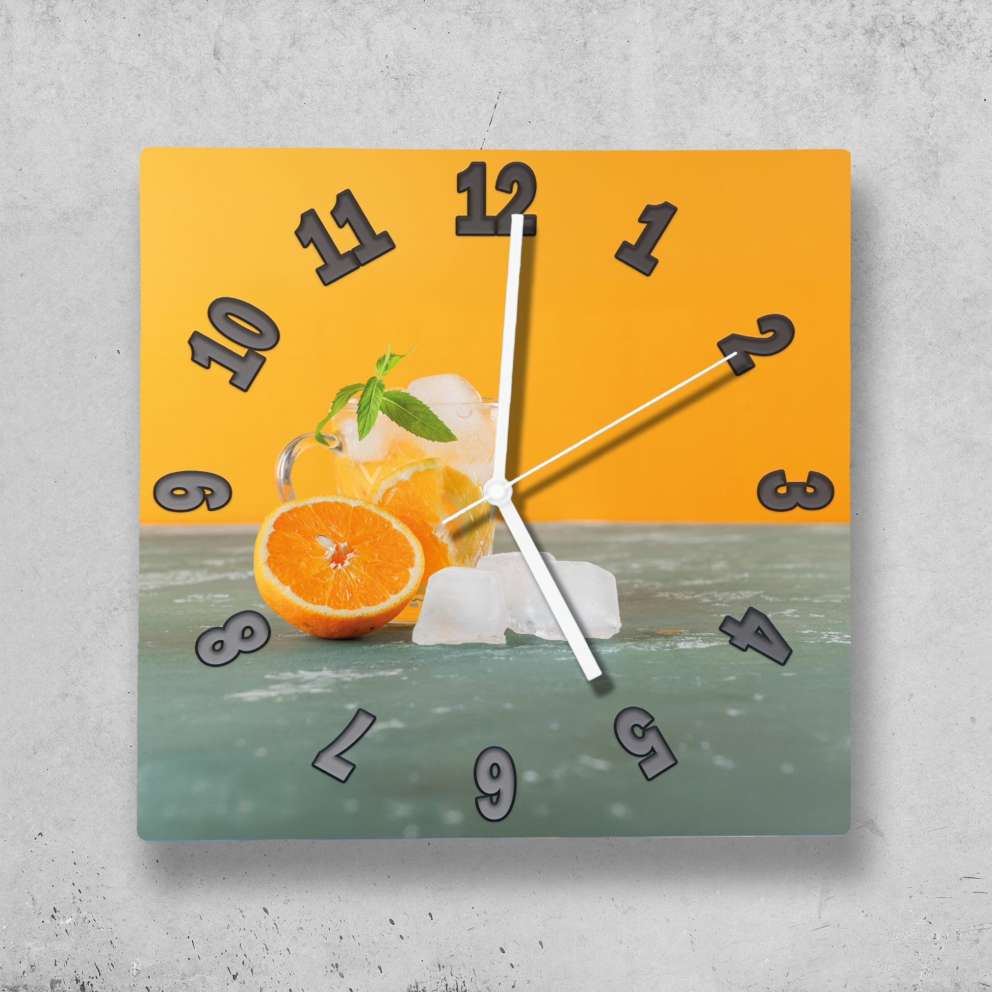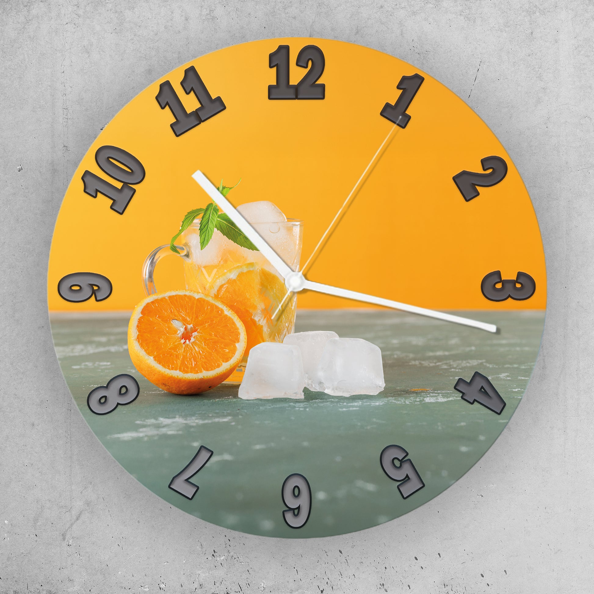 Hochwertige 30cm-Uhren Made in Alzenau Lautlose Uhr MDF Acryl Motiv Zitrone auf Eis