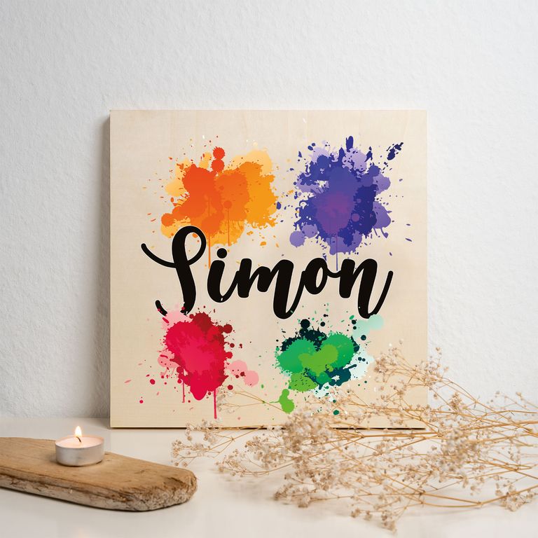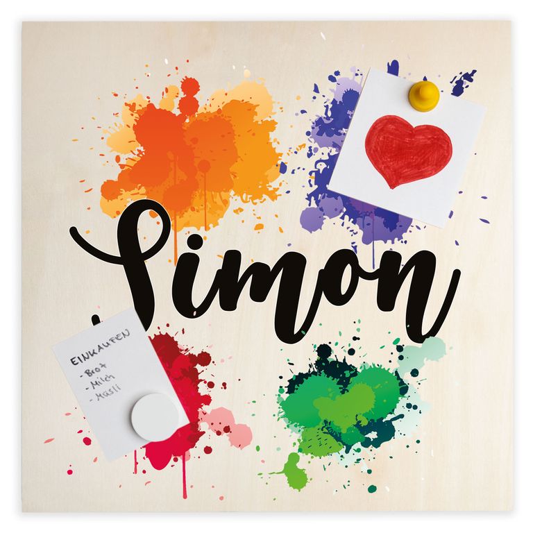 Namenstafel Holz-Magnetboard Holztafel Pinnwand - Inkl. 3 Magnete Motiv: Farbkleckse