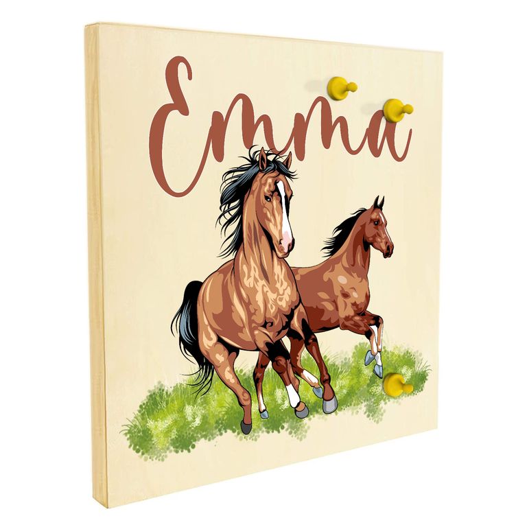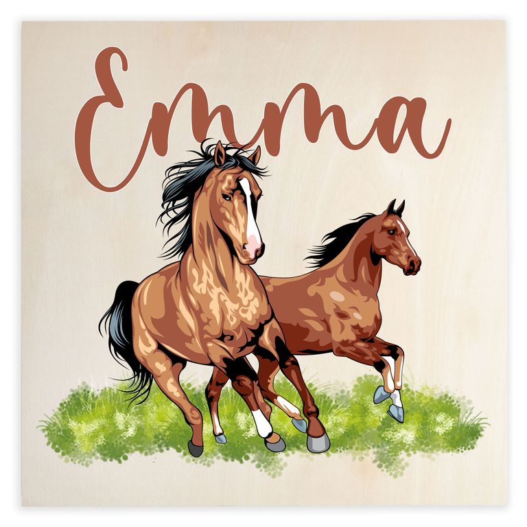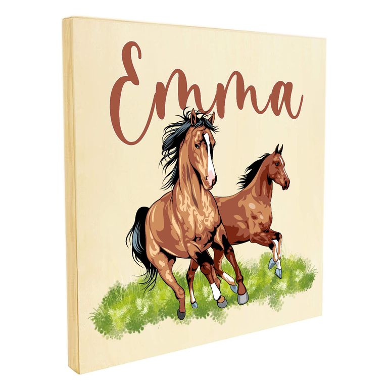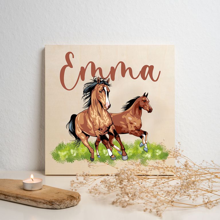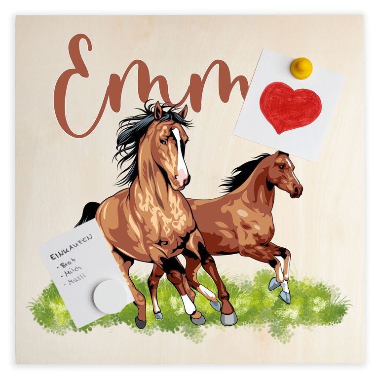 Namenstafel Holz-Magnetboard Holztafel Pinnwand - Inkl. 3 Magnete Motiv: Pferde