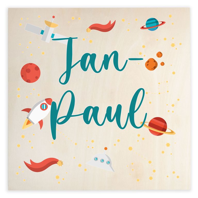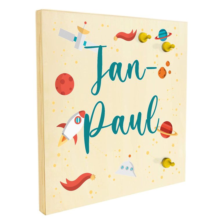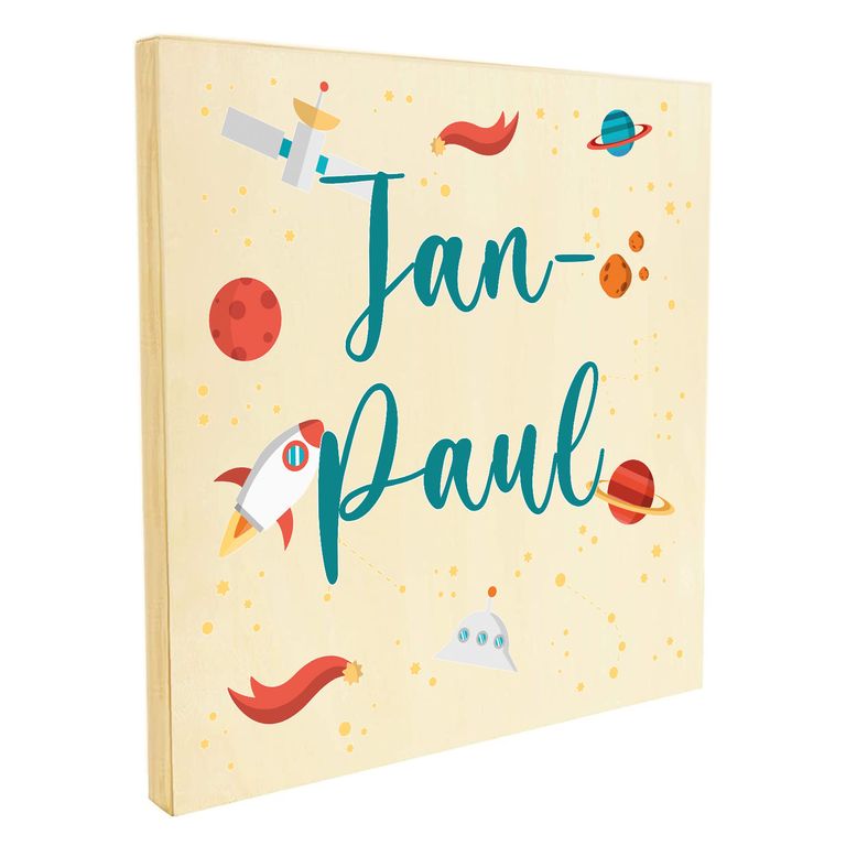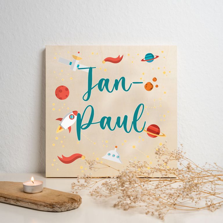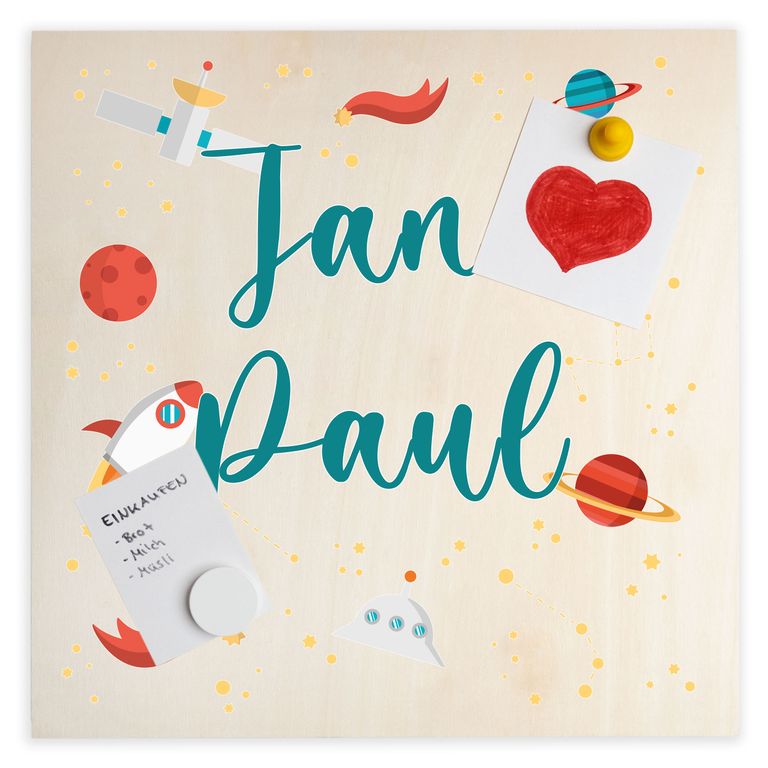 Namenstafel Holz-Magnetboard Holztafel Pinnwand - Inkl. 3 Magnete Motiv: Space