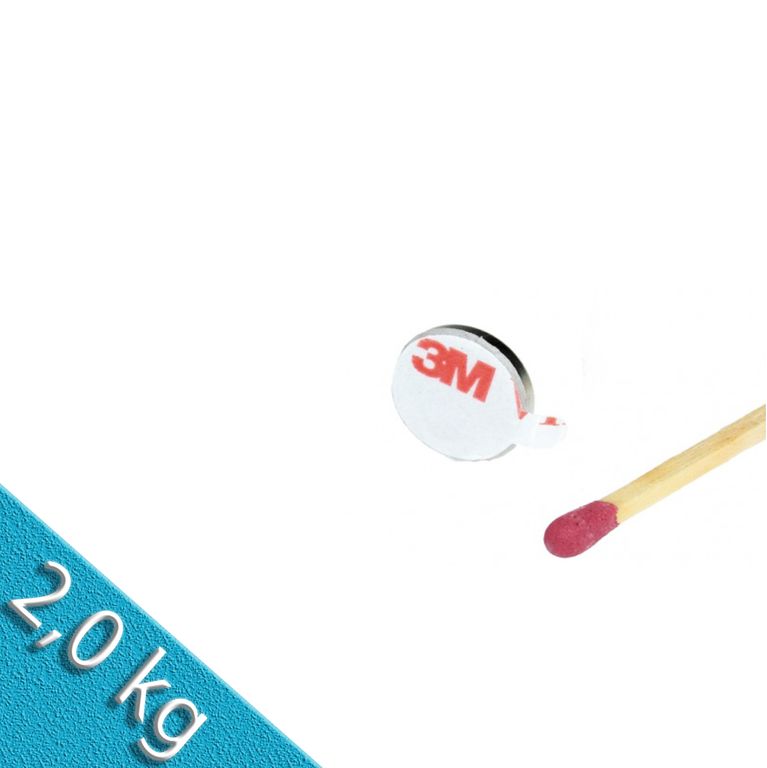 Neodym Scheibenmagnet Ø 20,0 x 2,0 mm Nickel selbstklebend mit 3M4920 - Polsterschaum Kleber
