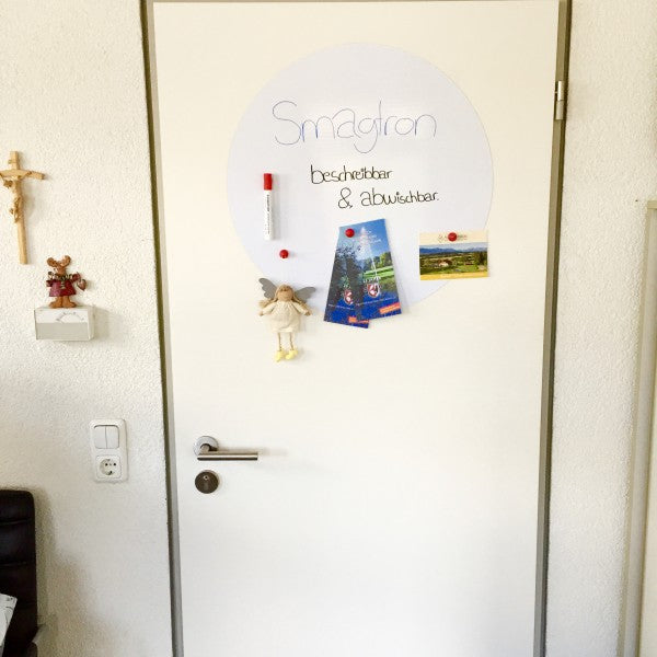 Eisenfolie Weiß Matt: Mit dieser Folie können sie ihre Notizen, Fotos, Briefe, Blätter ect. an die Wand heften. Sie können die Folie auch beliebig mit einer Schere oder einem Kuttermesser zuschneiden. Man kann sie z.B. mit Kugelschreibern, Markern, Filzstifte für Lager- oder andere Beschriftungen beschreiben, jedoch kann man es nicht mehr abwischen.