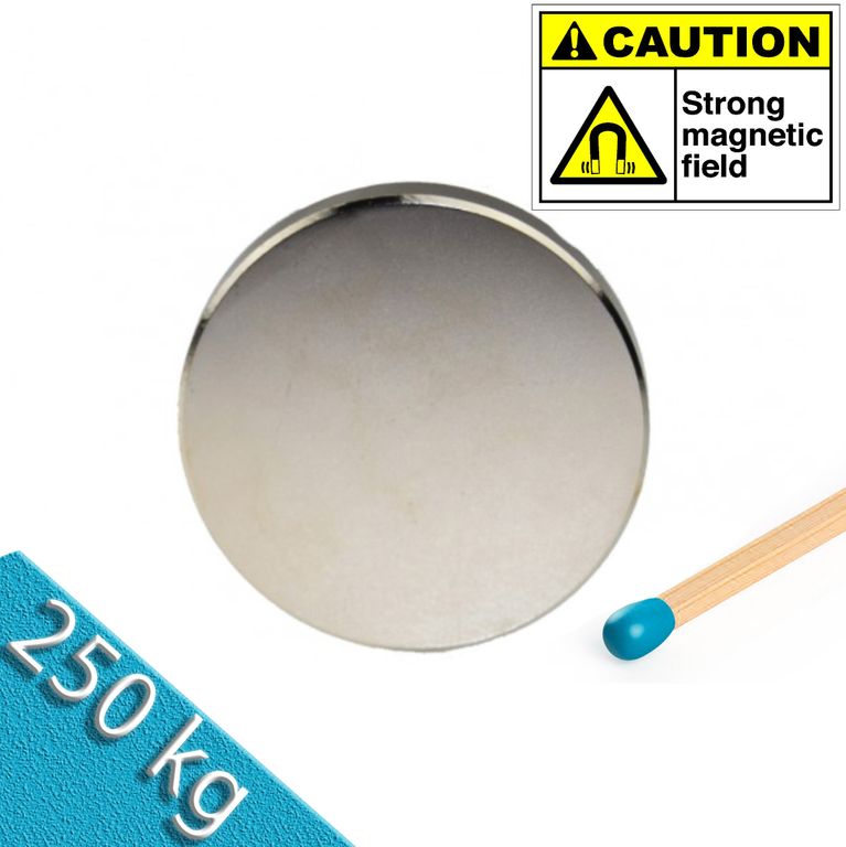 Scheibenmagnet Ø 70,0 x 50,0 mm N45 Nickel - hält 250 kg